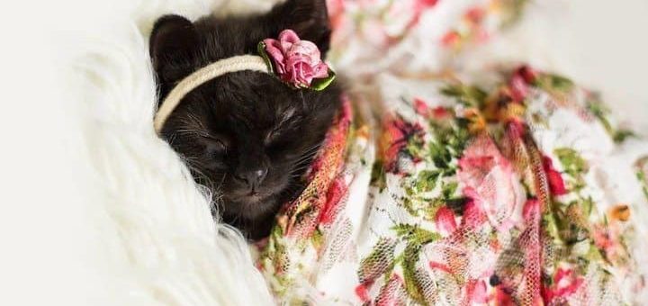 Фотограф Китти Шауб из Бентон-Харбора, штат Мичиган, решила проверить эту теорию, вдохновившись, увидев своего котёнка, дремлющего на диване. Шауб готовила реквизит для предстоящей детской фотосессии и решила ради смеха попробовать несколько поз с маленькой Луной.  Ачтобы сделать забавные снимки,  к этой задаче стоит относиться серьёзно, ведь обычная кошка гораздо менее восприимчива к подобному, скажем так, баловству.