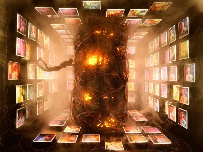 Его стиль легко узнать: тщательно поставленные кадры, игра света и тени, и ощущение сна наяву. Одни сцены снимаются в реальных интерьерах, другие — в созданных вручную миниатюрах, которые выглядят как полноразмерные пространства. Именно эта игра реальности и вымысла лежит в основе его серии CUBES, где домашние комнаты превращаются в фантастические, почти научно-фантастические пространства.